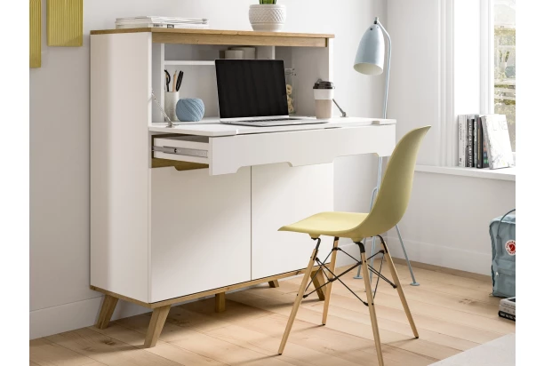 Sekretář s výklopným stolkem Scandi, bílá/dub nox