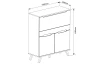 - 1 x pravé dveře (úložný prostor, 1 x police – výškově nastavitelná)