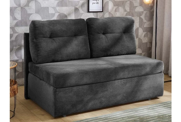Malá rozkládací pohovka je očalouněna měkkou strukturovanou látkou v barvě tmavě šedá a rozměrově najde své místo v téměř každém pokoji vašeho bytu. Pohovka s opěrnými polštáři lze jednoduše rozložit na lůžko pro příležitostné spaní, což jistě ocení například vaše návštěva.
