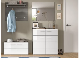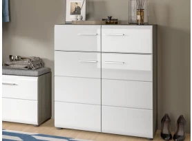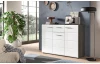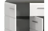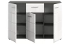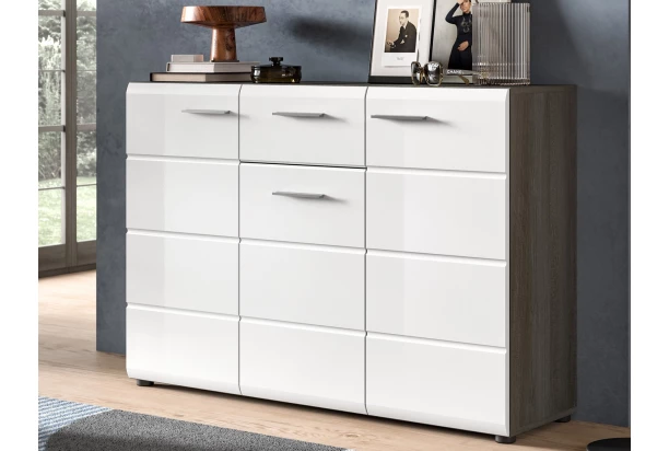 Komoda se zásuvkou z programu Salsa – moderní, elegantní a zároveň praktický nábytek v kombinaci šedý kouřový dub s leskle bílými plochami. Lesklé čelní plochy doplňují horizontálně frézované linie a zaoblené hrany, které jsou příjemnými detaily. Skříňka o šířce 120 cm má 1 šuplík a 3 otočné dveře, za kterými najdete výškově nastavitelné police pro ukládání nejrůznějších předmětů anebo třeba oblečení. Snadno udržovatelné povrchy lze čistit lehce navlhčeným hadříkem pro odstranění prachu a nečistot. Tato komoda se šuplíkem se dobře hodí do moderního bytu a najde své praktické využití v předsíni, obýváku, jídelně, ložnici anebo třeba domácí pracovně.