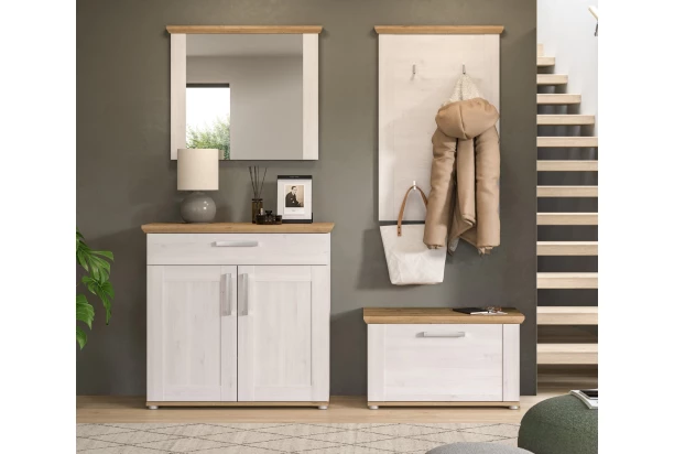 Nástěnné zrcadlo z programu Verona – elegantní nábytek v kombinaci běleného sibiřského modřínu a dubu artisan má okrasné reliéfy a v každém interieru vytvoří příjemnou domáckou atmosféru s rustikálním nádechem. Snadno udržovatelné povrchy lze čistit lehce navlhčeným hadříkem pro odstranění prachu a nečistot. Toto zrcadlo s panelem poslouží nejen v předsíni, ale i v chodbě, obýváku, jídelně anebo třeba ložnici.