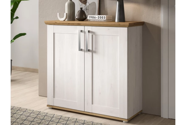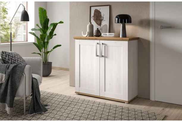 Skříňka z programu Verona – elegantní nábytek v kombinaci běleného sibiřského modřínu a dubu artisan má okrasné reliéfy a v každém interieru vytvoří příjemnou domáckou atmosféru s rustikálním nádechem. Komoda o šířce 95 cm má 2 dveře, za kterými najdete police pro ukládání nejrůznějších předmětů nebo oblečení. Snadno udržovatelné povrchy lze čistit lehce navlhčeným hadříkem pro odstranění prachu a nečistot. Tato skříňka prakticky poslouží v obýváku, jídelně, ložnici, předsíni anebo kdekoliv jinde, kde potřebujete ukládat věci.