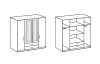 - pravý vnitřní blok: šířka cca 43 cm, otevřený úložný prostor, 1 x závěsná šatní tyč z kovu, 1 x police