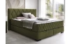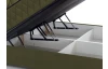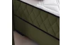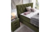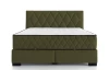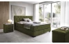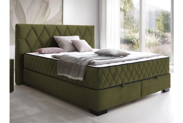 Krásná manželská postel o velikosti lůžka 180×200 cm zaujme stylovým proševem a v prostoru ložnice působí velmi luxusně. Postel je očalouněna odolnou látkou v optice lesklého sametu v odstínu mechově zelená. O pohodlí spánku se postarají kvalitní vysoké matrace s taštičkovým jádrem, které zajistí optimální komfort během spaní. Díky vyšší poloze lůžka je tak vstávání z postele snazší. Praktický úložný prostor ve spodní části postele je snadno přístupný z přední strany postele a poslouží například pro uschování lůžkovin anebo sezónních věcí.