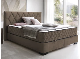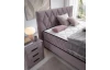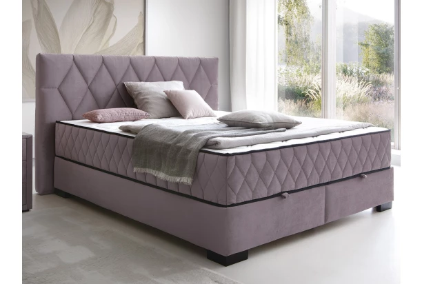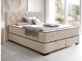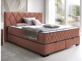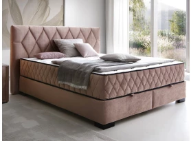 Krásná manželská postel o velikosti lůžka 160×200 cm zaujme stylovým proševem a v prostoru ložnice působí velmi luxusně. Postel je očalouněna odolnou látkou v optice lesklého sametu v odstínu světle růžová. O pohodlí spánku se postarají kvalitní vysoké matrace s taštičkovým jádrem, které zajistí optimální komfort během spaní. Díky vyšší poloze lůžka je tak vstávání z postele snazší. Praktický úložný prostor ve spodní části postele je snadno přístupný z přední strany postele a poslouží například pro uschování lůžkovin anebo sezónních věcí.