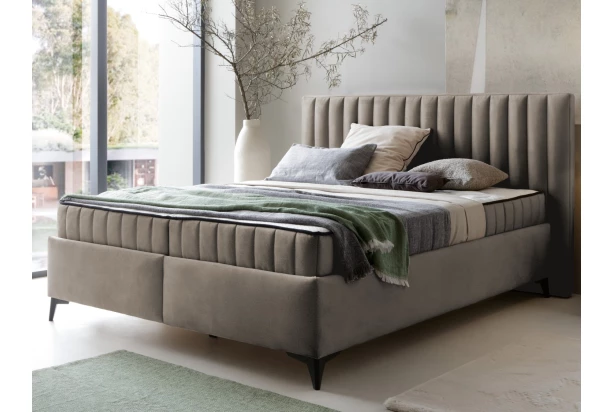 Trendy manželská postel o velikosti lůžka 180×200 cm má stylové prošití potahu ve vertikálním směru a skvěle se hodí do moderní ložnice. Postel je očalouněna sametově hebkou látkou v odstínu béžová, která je zároveň i velmi odolná. Toto dvoulůžko obsahuje kvalitní vysoké matrace s taštičkovým jádrem a studenou pěnou, které zajistí optimální komfort během spaní. Díky vyšší poloze lůžka se vám bude z postele lépe vstávat. Ve spodní části postele najdete praktické úložné prostory, ke kterým se snadno dostanete z bočních stran. Do úložných prostor můžete ukládat například lůžkoviny, deky nebo některé sezónní věci. Postel je na nožkách, tudíž můžete využívat během úklidu i robotický vysavač, což je velmi praktické.