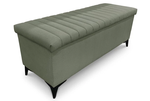 Trendy úložná lavice/peřiňák se skvěle hodí nejen do moderní ložnice, ale i obýváku nebo předsíně. Lavice je očalouněna sametově hebkou látkou v odstínu olivově zelená, která je zároveň i velmi odolná. Konstrukce na černých nožkách umožňuje snazší udržbu podlahy. Pod výklopným sedákem najdete dostatek prostoru pro uložení lůžkovin, příkrývek anebo věcí sezónní potřeby.