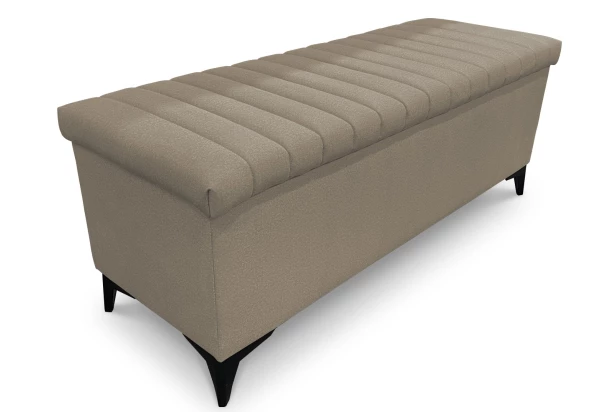 Trendy úložná lavice/peřiňák se skvěle hodí nejen do moderní ložnice, ale i obýváku nebo předsíně. Lavice je očalouněna sametově hebkou látkou v odstínu béžová, která je zároveň i velmi odolná. Konstrukce na černých nožkách umožňuje snazší udržbu podlahy. Pod výklopným sedákem najdete dostatek prostoru pro uložení lůžkovin, příkrývek anebo věcí sezónní potřeby.