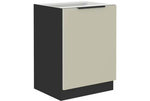 Dolní kuchyňská skříňka o šířce 60 cm z programu Arona v jednoduchém, funkčním a zároveň moderním stylu. V kombinaci kašmírové a černé matné barvy. Jednotlivé elementy z kuchyňského programu Arona můžete mezi sebou různě kombinovat a sestavit si tak kuchyni podle vašich představ a prostorových možností.