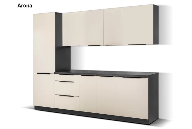 Horní kuchyňská skříňka o šířce 30 cm z programu Arona v jednoduchém, funkčním a zároveň moderním stylu. V kombinaci kašmírové a černé matné barvy. Jednotlivé elementy z kuchyňského programu Arona můžete mezi sebou různě kombinovat a sestavit si tak kuchyni podle vašich představ a prostorových možností.