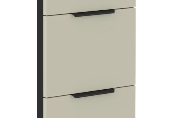 Dolní zásuvková kuchyňská skříňka o šířce 40 cm z programu Arona v jednoduchém, funkčním a zároveň moderním stylu. V kombinaci kašmírové a černé matné barvy. Jednotlivé elementy z kuchyňského programu Arona můžete mezi sebou různě kombinovat a sestavit si tak kuchyni podle vašich představ a prostorových možností.