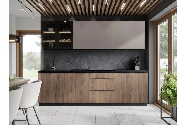 Dolní kuchyňská skříňka o šířce 60 cm z programu Monza vyniká elegantní kombinací dřevodekoru ořech okapi a černé matné barvy, která působí moderně a zároveň vytváří útulnou atmosféru. Jednotlivé elementy z kuchyňského programu Monza můžete mezi sebou různě kombinovat a sestavit si tak kuchyni podle vašich představ a prostorových možností.