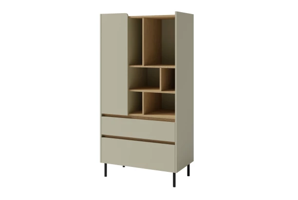 Vysoká komoda s regálem – nábytek v nadčasovém minimalistickém stylu pasuje univerzálně do dětského pokoje, pokoje teenagerů i třeba domácí pracovny, kde vždy prakticky poslouží. Tento univerzální nábytek lze využít v každém moderním interieru a téměř každé místnosti vašeho bytu. Skříňka o šířce 80 cm a výšce 165 cm má 2 šuplíky, 1 dveře a 6 otevřených přihrádek různých velikostí pro hravé a asymetrické uspořádání vašich věcí.