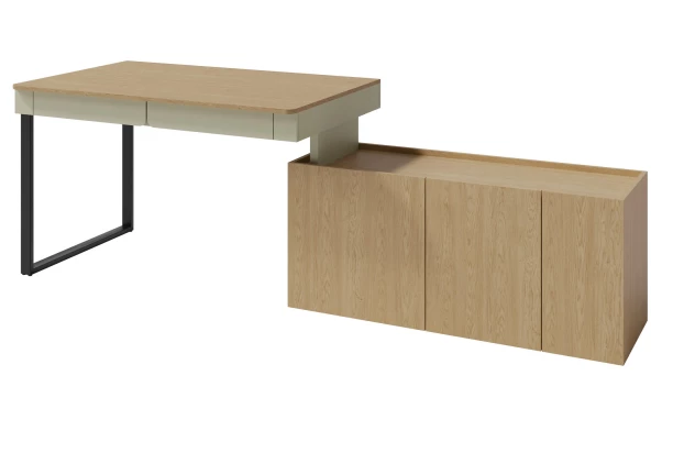 Psací stůl s komodou Lucky, eukalyptově zelená/baltský dub