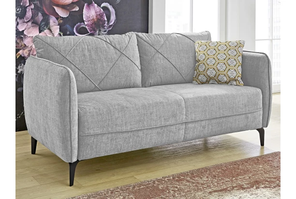 Elegantní dvoumístná pohovka s pohodlným vypolstrováním a opěrnými polštáři se hodí do každého obýváku. Dvojsedák je očalouněn kvalitní velurovou látkou v barvě šedá a doplněn vzorovaným polštářkem. Černé kovové nožky působí v interieru vzdušně a usnadní vám údržbu podlahy.