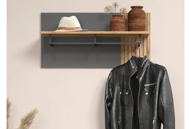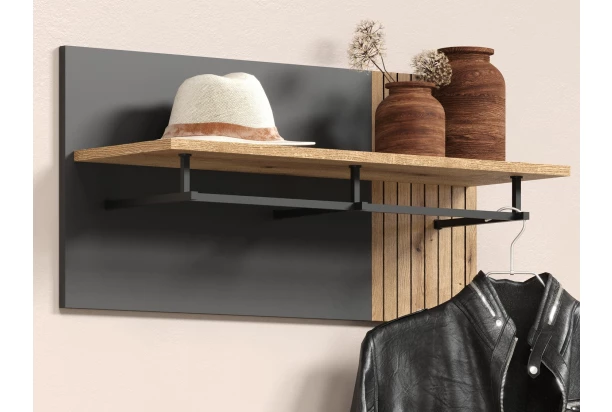 Nástěnný šatní panel Esteban, antracit/dub evoke