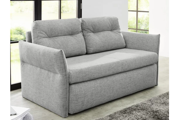 Praktická dvoumístní pohovka s rozkládací funkcí se kdykoliv snadno promění v lůžko pro hosty, na kterém se pohodlně vyspí dvě osoby. Včetně opěrných polštářů a úložného prostoru, kam uložíte třeba ložní prádlo a doplňky. Očalouněna šedou tkaninou. Pohovka je tak naprosto flexibilní a vždy připravena na jakoukoliv denní situaci. Ideální do malého bytu anebo pokoje pro hosty.