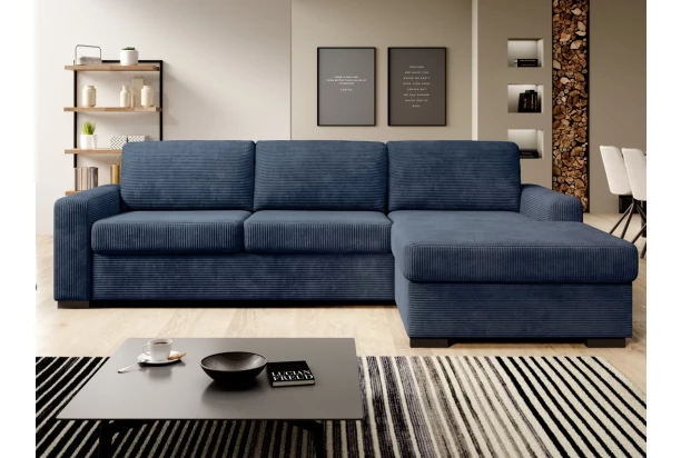 Komfortní rohová sedačka je vybavena kvalitním rozkládacím mechanismem s matrací o velikosti 160×191 cm pro trvalé spaní, kde najde pohodlí jedna až dvě osoby. Na útulnosti přidává i měkoučká potahová látka s proužkovanou strukturou v odstínu královská modrá. Sedací souprava s rozkladem je ideální také do menších bytů, kde může posloužit jako plnohodnotné lůžko. Díky snadnému rozložení se sedačka promění v postel během pár vteřin.