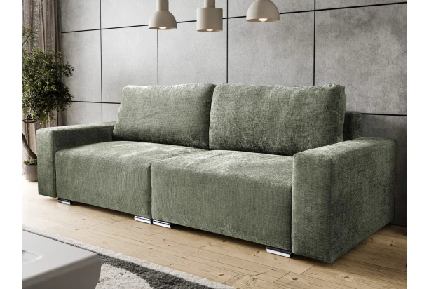 Pohodlná rozkládací pohovka v nadčasovém stylu pasuje do každého interieru a nabízí dostatek prostoru pro vaši každodenní pohodu. Očalouněna látkou s jemnou povrchovou strukturou v barvě mechově zelená. Velké opěrné polštáře poskytují pohodlí a zároveň oporu, po jejich odejmutí můžete pohovku využít jako lůžko pro příležitostné spaní anebo relaxaci. Po sedákem najdete dva úložné prostory, kam můžete ukládat například deky nebo věci sezónní potřeby.