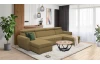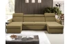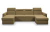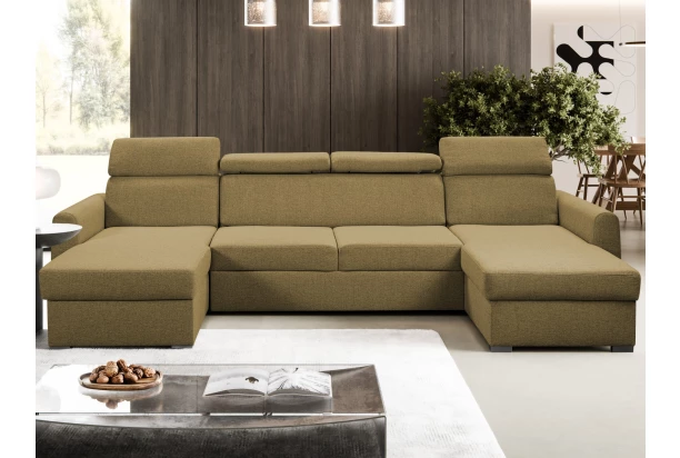 Pohodlná sedací souprava ve tvaru U se rozměrově hodí i do menšího obýváku, kde nabídne pohodlně měkké sezení s polohovatelnými opěrkami hlavy. Sedačka je očalouněna odolnou látkou v barvě žluto-hnědá a má dva otomany, na kterých můžete v pohodě relaxovat nebo sledovat televizi. Pod otomany najdete praktické úložné prostory. Funkci rozkladu pro příležitostné spaní využijete při odpočinku anebo třeba vaše víkendová návštěva.