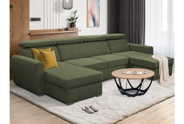 Pohodlná sedací souprava ve tvaru U se rozměrově hodí i do menšího obýváku, kde nabídne pohodlně měkké sezení s polohovatelnými opěrkami hlavy. Sedačka je očalouněna odolnou látkou v barvě světle šedá a má dva otomany, na kterých můžete v pohodě relaxovat nebo sledovat televizi. Pod otomany najdete praktické úložné prostory. Funkci rozkladu pro příležitostné spaní využijete při odpočinku anebo třeba vaše víkendová návštěva.