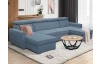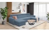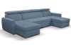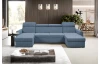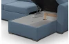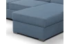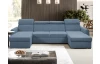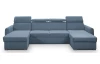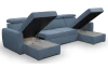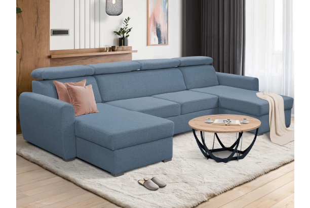 Pohodlná sedací souprava ve tvaru U se rozměrově hodí i do menšího obýváku, kde nabídne pohodlně měkké sezení s polohovatelnými opěrkami hlavy. Sedačka je očalouněna odolnou látkou v barvě denimově modrá a má dva otomany, na kterých můžete v pohodě relaxovat nebo sledovat televizi. Pod otomany najdete praktické úložné prostory. Funkci rozkladu pro příležitostné spaní využijete při odpočinku anebo třeba vaše víkendová návštěva.