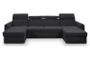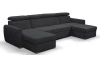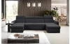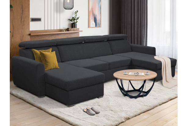 Pohodlná sedací souprava ve tvaru U se rozměrově hodí i do menšího obýváku, kde nabídne pohodlně měkké sezení s polohovatelnými opěrkami hlavy. Sedačka je očalouněna odolnou látkou v barvě černá a má dva otomany, na kterých můžete v pohodě relaxovat nebo sledovat televizi. Pod otomany najdete praktické úložné prostory. Funkci rozkladu pro příležitostné spaní využijete při odpočinku anebo třeba vaše víkendová návštěva.