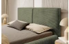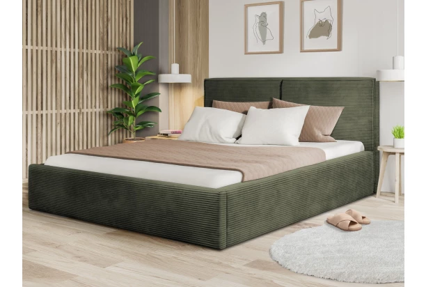 Postel o velikosti lůžka 180×200 cm je očalouněna měkkoučkou strukturovanou látkou v barvě olivově zelená, která působí velmi útulně. Čalounění zadního čela doplňují okrasné látkové lemy. Tato dvoulůžková postel má stabilní konstrukci a svým moderním stylem se hodí téměř do každé ložnice.