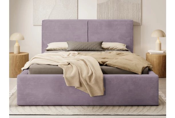Postel o velikosti lůžka 180×200 cm je očalouněna měkkoučkou strukturovanou látkou v barvě pudrově fialová, která působí velmi útulně. Čalounění zadního čela doplňují okrasné látkové lemy. Tato dvoulůžková postel má stabilní konstrukci a svým moderním stylem se hodí téměř do každé ložnice.