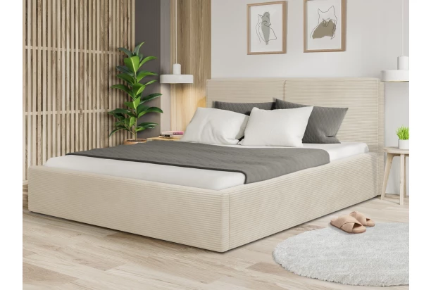 Postel o velikosti lůžka 180×200 cm je očalouněna měkkoučkou strukturovanou látkou v barvě krémová vanilka, která působí velmi útulně. Čalounění zadního čela doplňují okrasné látkové lemy. Tato dvoulůžková postel má stabilní konstrukci a svým moderním stylem se hodí téměř do každé ložnice.