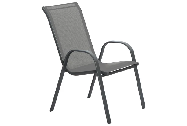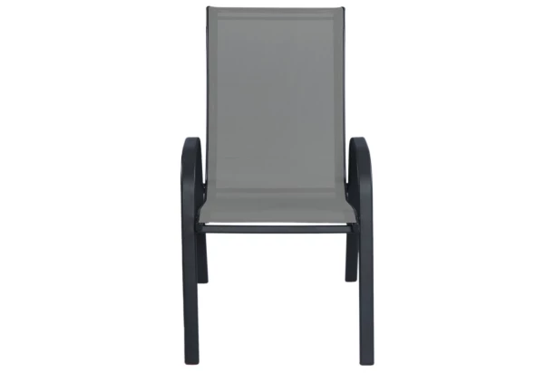 Pohodlně zaoblené zahradní křeslo má černou kovovou konstrukci a sedák odolné umělé tkaniny v barvě šedá. Poskytne tak příjemné pohodlí na zahradě, balkonu či terase.