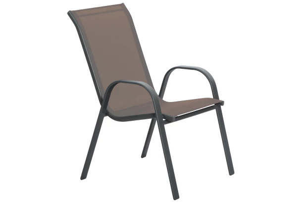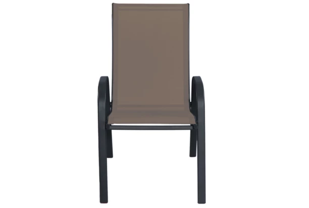 Pohodlně zaoblené zahradní křeslo má černou kovovou konstrukci a sedák odolné umělé tkaniny v barvě hnědá. Poskytne tak příjemné pohodlí na zahradě, balkonu či terase.