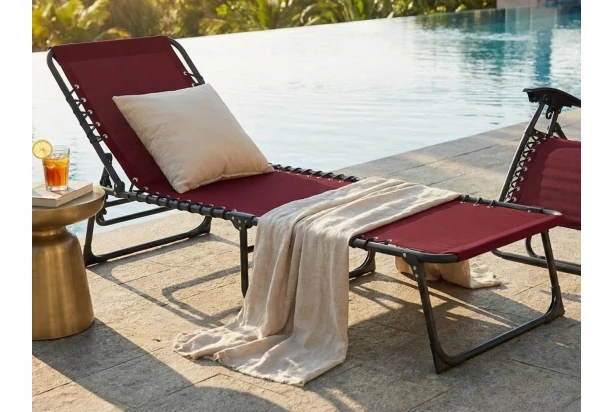 Až již se rozhodnete pro relaxování na slunci či ve stínu, tak Vám toto polohovatelné zahradní lehátko vždy dobře poslouží. Z kombinace kovu a červené látky.