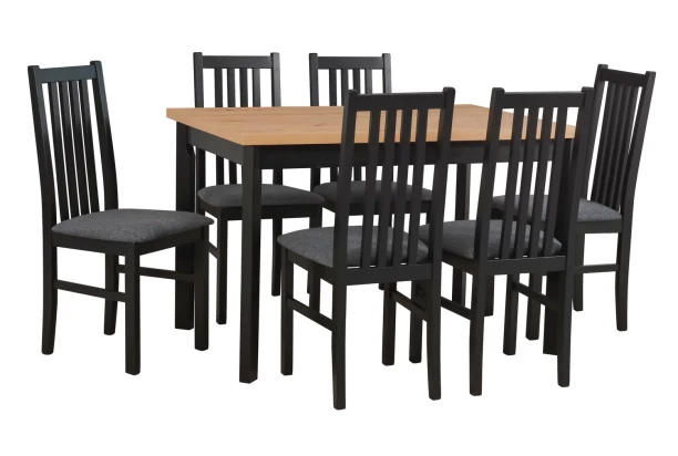 Klasický jídelní stůl o velikosti 120×80 cm v dekoru dub artisan/černý má obdélný tvar a hodí se do každé kuchyně a jídelny. Tento stůl má podnož vyrobenou z masivního bukového dřeva, která mu dodává pevnost a stabilitu.