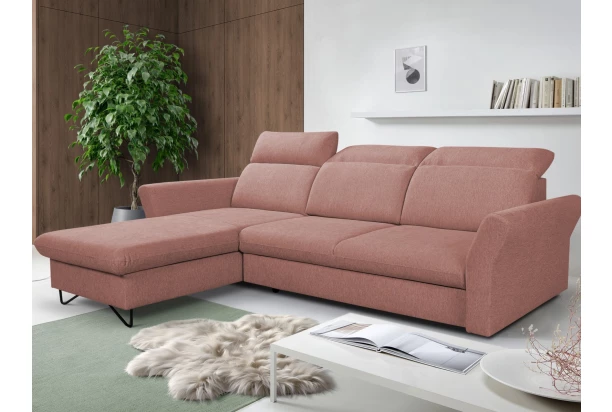 Rohová sedací souprava v zaoblených tvarech vytvoří elegantní prostředí v prostoru obýváku a potěší pohodlně měkkým sezením s polohovatelnými opěrkami. Sedačka je očalouněna jemně strukturovanou látkou v barvě starorůžová. Oceníte i její praktickou stránku díky rozkládací funkci na lůžko a úložnému prostoru, který je ukrytý pod otomanem. Otoman sedačky lze umístit na pravou i levou stranu a vytvořit si tak ze sedačky pravý anebo levý roh, aby lépe pasovala právě do vašeho bytu.