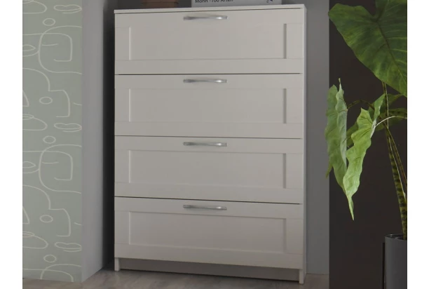 Komoda se 4 šuplíky z univerzálního ložnicového programu Leporolo – nábytek pro všechny věkové generace, děti, teenagery, dospělé i seniory. Klasický elegantní styl v provedení bílá mat s charakteristickým orámováním předních ploch se hodí do jakéhokoliv interiéru.