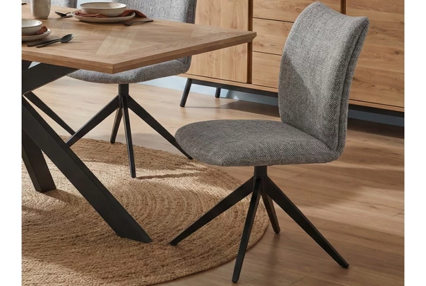 Jídelní židle v elegantním moderním stylu má pohodlně zaoblené opěradlo, otočný sedák a černou kovovou podnož. Očalouněna tkaninou v barvě holubí šedá. Židle se bude dokonale hodit do moderně zařízené jídelny, kde vynikne.