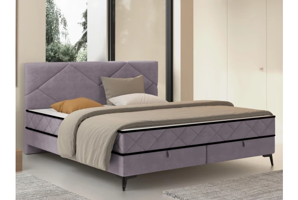 Moderní dvoulůžková postel s krásným geometrickým proševem zaujme v prostoru každé ložnice. Postel o velikosti lůžka 160×200 cm je očalouněna sametově lesklou látkou v barvě světle růžová, která působí luxusně a zároveň je odolná. Součástí této postele jsou kvalitní vysoké matrace s taštičkovým jádrem a studenou pěnou, které zajistí optimální komfort během spaní. Lůžko ve vyšší poloze je oblíbené, protože se z něj lépe vstává. V dolní části postele jsou ukryté praktické úložné prostory, které jsou přístupné z přední strany – pohodlně do nich uschováte například ložní prádlo. Díky zvýšené konstrukci na nožkách je údržba podlahy pod postelí snazší a můžete využít například i robotický vysavač.
