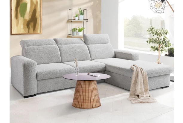 Rohová sedačka se zaoblenými tvary je ideální volba pro ty, kdo hledají nadčasový elegantní styl, který je estetický i funkční zároveň. Polohování zádových opěrek vám umožní uvelebit se snadno v každé poloze. Pohodlné sezení doplňuje potahová látka buklé s delším strukturovaným vlasem v barvě světlá šedo-béžová, která je příjemně měkká a vytváří útulnou atmosféru v obýváku. Rohová sedačka s otomanem tvoří pravý roh. Pod otomanem najdete praktický úložný prostor, kam uložíte například deky nebo věci sezónní potřeby. Funkce rozkladu na příležitostné lůžko ocení nejen vaše návštěva, ale i třeba vy během chvil domácí relaxace.