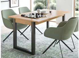 - funkce rozkladu: přídavná středová deska (šířka 40 cm) – přiložením přídavné středové desky se původní 150 cm šířka stolu zvětší na 190 cm (kovové pojezdy, aretační páčky, přídavná deska uložena do středové lišty)