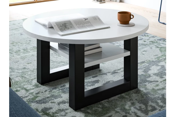 Kulatý konferenční stolek o průměru 75 cm je vyroben v kombinaci bílá/antracit a dobře pasuje do moderního i klasicky zařízeného obýváku. Zesílená podnož poskytuje dobrou stabilitu.