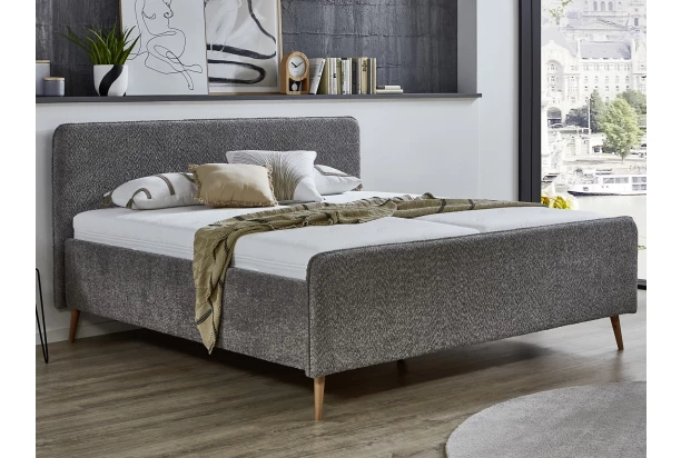 Čalouněná postel v oblíbeném skandinávském stylu má zaoblený design čela a vytvoří útulné prostředí v prostoru vaší ložnice. Postel je očalouněna příjemně měkkou strukturovanou látkou v barvě středně šedá, která zaujme na pohled a dokreslí útulnou atmosféru v interieru. Zaoblené tvary čela navíc zvýrazňují elegantní látkové lemy. Stabilní konstrukci postele doplňují nohy ze světlého masivního dřeva. Lůžko o velikosti 140×200 cm má pevný boční rám s možností nastavení výšky lůžka na základě vaší potřeby. Tuto stylovou postel si tak můžete snadno doplnit rošty a matracemi pro váš každodenní komfortní spánek.