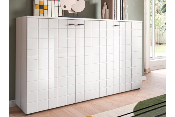 Skříňka 3-dveřová z řady Monty v kombinaci bílá/bílá lesk zaujme na pohled zajímavě strukturovanými povrchy s geometrickým vaflovým vzorem a skvěle tak doplní moderní interier. Skříňka o šířce 138 cm má 3 otočné dveře, za kterými najdete úložné prostory s výškově nastavitelnými policemi, kam můžete univerzálně ukládat oblečení, časopisy nebo jakékoliv jiné věci. Tento nábytek je vyroben z certifikovaného dřevěného materiálu FSC® a je synonymem nejen pro kvalitu, ale také pro udržitelnost a ochranu životního prostředí. Tato úložná skříňka hodí do každého moderně laděného bytu, kde udělá parádu a zároveň prakticky poslouží.