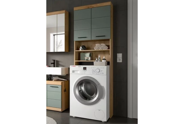Úložná skříňka nad pračku Scout, dub artisan/šalvějově zelená