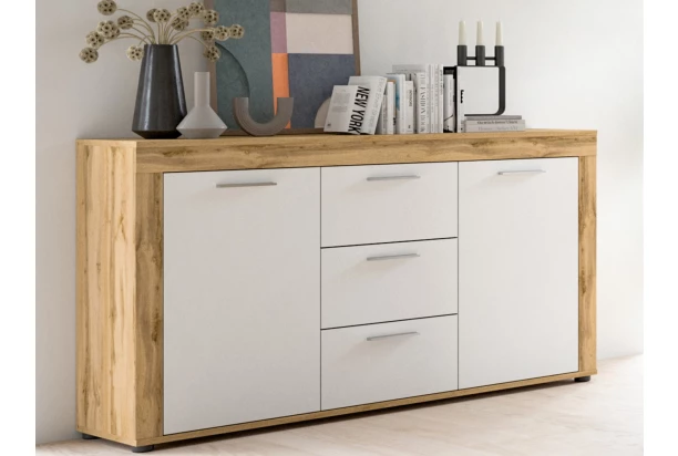 Komoda se zásuvkami z kolekce Jana – nábytek v moderním nadčasovém stylu působí elegantně a zároveň prakticky poslouží během každého dne. Přímočaré linie v kombinaci dekoru dub wotan/bílá navíc zvýrazňuje oblíbená optika širokých předních rámů. Tento nábytek je vyroben z certifikovaného dřevěného materiálu FSC® a je synonymem nejen pro kvalitu, ale také pro udržitelnost a ochranu životního prostředí. Komoda o šířce 125 cm nabízí kombinaci zásuvek pro uložení drobností a také vnitřní prostory za otočnými dveřmi, kam uschováte například oblečení nebo větší předměty. Tato skříňka tak bude praktickou a zároveň estetickou součástí moderního bytu.