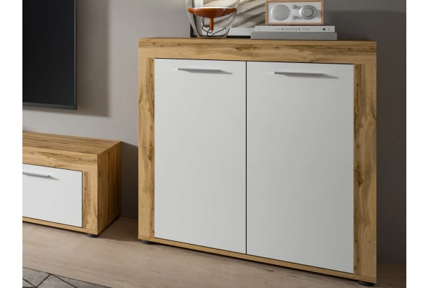 Komoda 2dveřová Jana, 80 cm, dub wotan/bílá