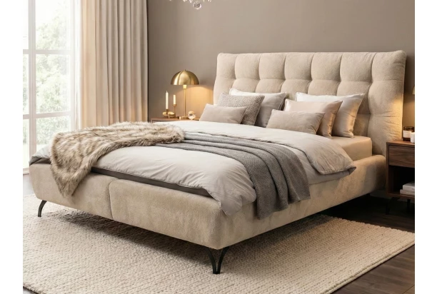 Atraktivní postel o velikosti lůžka 180×200 cm vytvoří útulnou atmosféru a pohodlí v každé moderní ložnici. Postel je vybavena výklopným roštem i praktickým úložným prostorem, který je přístupný z přední strany. Komfortně vypolstrované čelo doplňuje výrazný okrasný prošev a postel tak působí velmi luxusně. Postel na kovových nohách je očalouněna měkkoučkou látkou s delším vlasem v barvě béžová, která umocňuje útulnou atmodféru v prostoru ložnice.