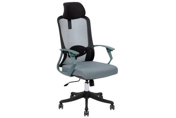 Moderní kancelářská židle má příjemně měkký sedák a pohodlný anatomický tvar. Kromě výškového nastavení má funkci houpací a nastavitelný sklon opěrky hlavy. Potažena kombinací černé síťoviny a šedo-modré látky. Oceníte také zvýšenou nosnost této židle.