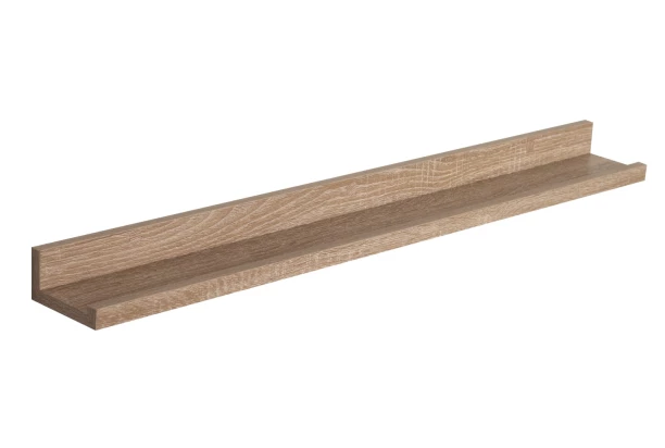 Jednoduše praktická police na zeď o šířce 80 cm je vyrobena v dekoru dub sonoma a poslouží kdekoliv v interieru – v kuchyni, koupelně nebo třeba v pracovně.