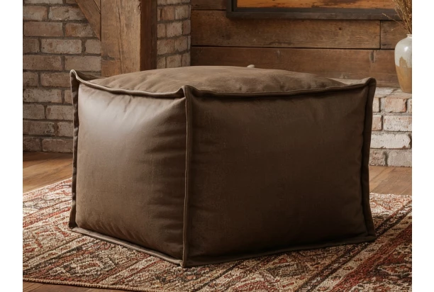 Čtvercový taburet o velikosti 70×70 cm má potah z atraktivní látky ve vintage optice kůže, díky kterému působí stylově a zaujme na pohled. Tvary taburetu dotváří okrasné látkové lemy. Díky měkké výplni se snadno tvarově přizpůsobí a lze využít nejen v obýváku u sedačky, ale i při relaxování, sledování televize nebo hraní her.